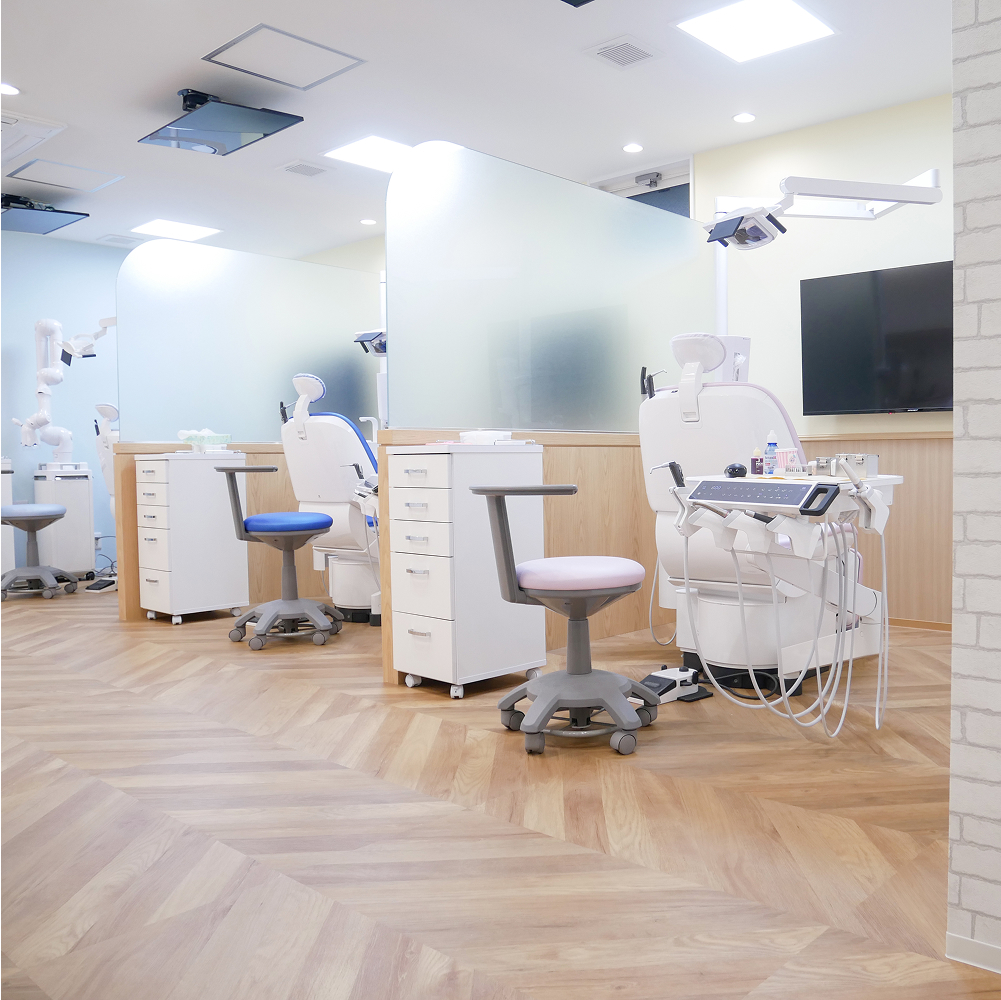 診療室の天井にはテレビを設置していますので、楽しいアニメを観ながらリラックスして治療を受けていただけます。お子さまが不安や恐怖心を感じることなく、自ら治療に前向きになれるよう信頼関係を築きながら治療を進めますので、小児歯科治療はおまかせください。